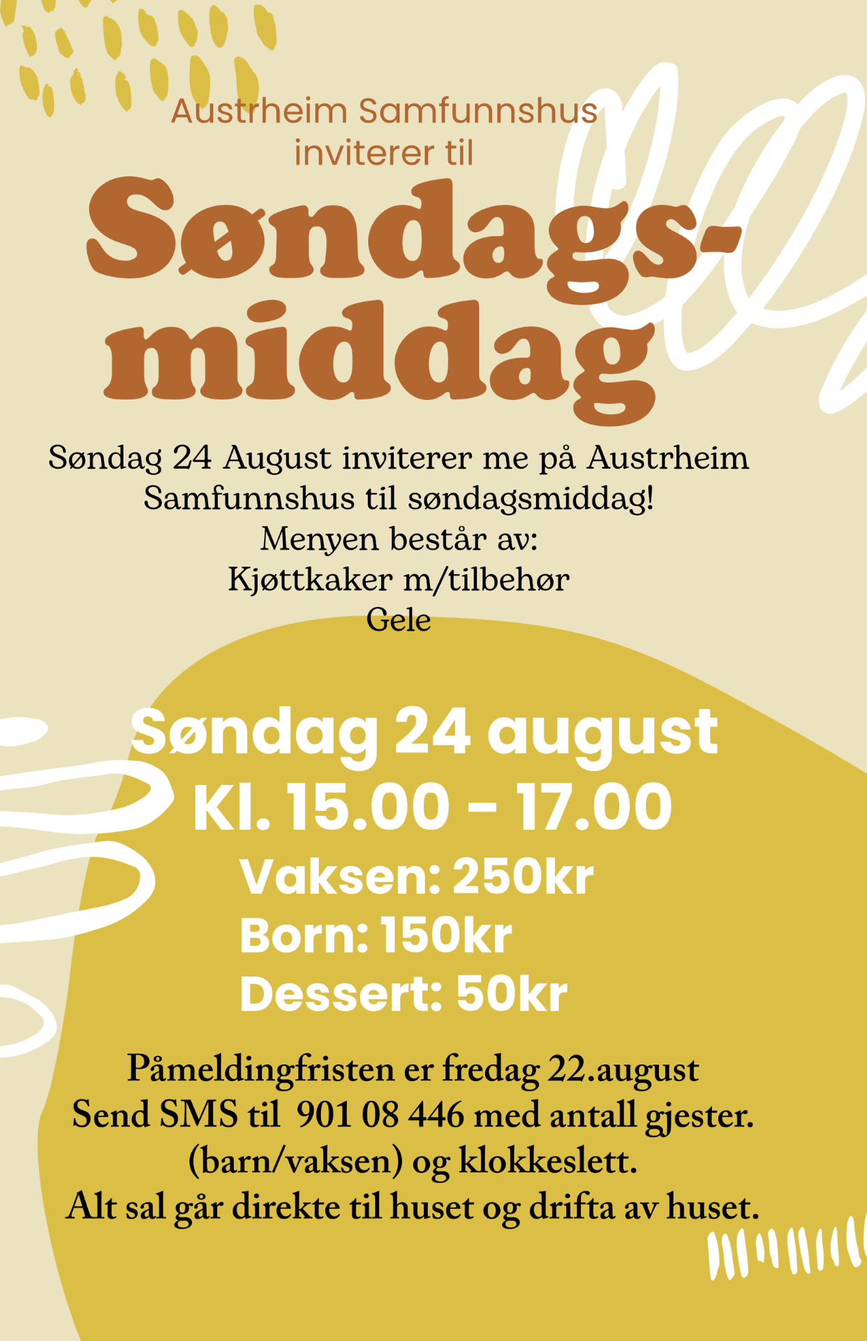 Søndagsmiddag 24 august kl. 15.00 - 17.00